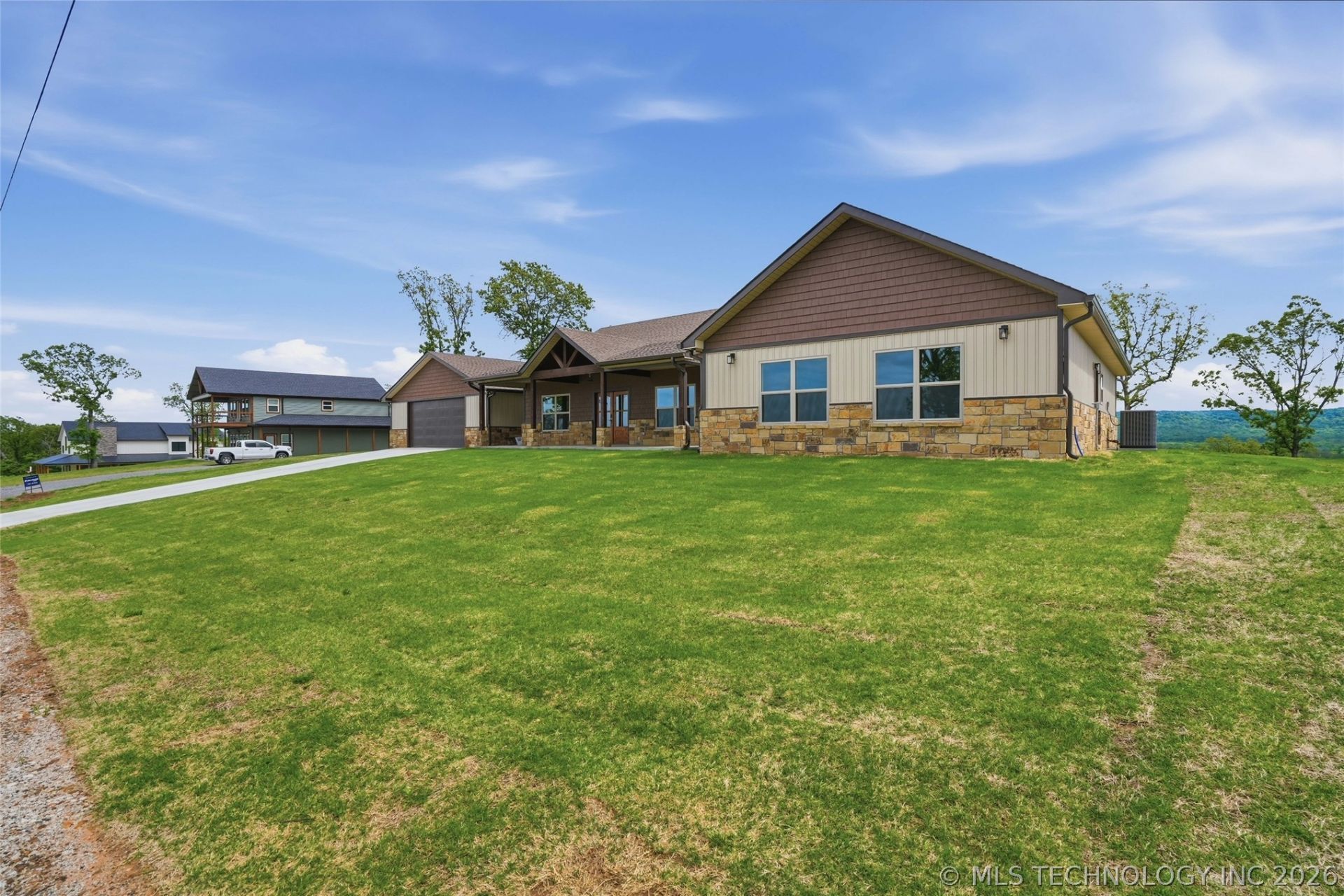 Now includes 5 bedrooms AND a 30X50 finished garage/shop! Welcome to your brand-new construction home nestled on over an acre of prime Lake Tenkiller property. This spacious 2483-square-foot (per builder) home offers the perfect blend of modern comfort and natural beauty. Step inside to discover 5 generous bedrooms and 2.5 bathrooms wrapped in contemporary style. The heart of this home is its open-concept living and dining area - perfect for entertaining or relaxing while soaking in those spectacular lake and valley views through large windows. No detail has been overlooked in the thoughtful design! Luxury vinyl plank flooring flows throughout, providing both elegance and durability. The kitchen and bathrooms feature stunning granite countertops that add a touch of sophistication to every space. The primary bedroom offers a peaceful sanctuary with its own ensuite bathroom, while the attached two-car garage provides convenient security for vehicles and storage. Located in the desirable Oakridge at Chicken Creek community, you'll be at the center of Lake Tenkiller's famous Bassmaster events. The Chicken Creek Point Public Use Area is just a short distance away, offering endless recreational opportunities. Purchase now and you'll have the exciting opportunity to add your personal touches to the finishing details, truly making this house your home. Whether you're seeking a permanent residence or vacation getaway, this waterfront property delivers the lake lifestyle you've been dreaming about - where every day feels like a vacation! Contact your agent for a link to the virtual video walk through!